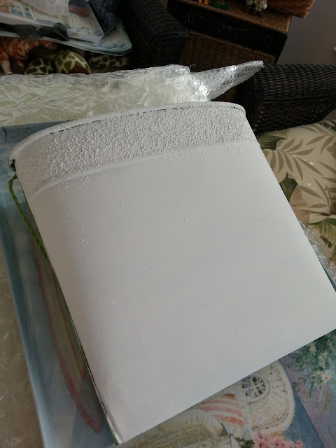 In California we had a wonderful Goodwill in our little town and I found several treasures there, all sorts of fun painting projects for the future. On a trip a few months before moving away I found a metal hanging basket that I instantly fell in love with...except for the color.